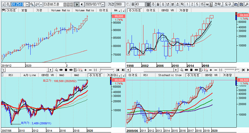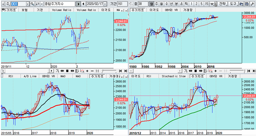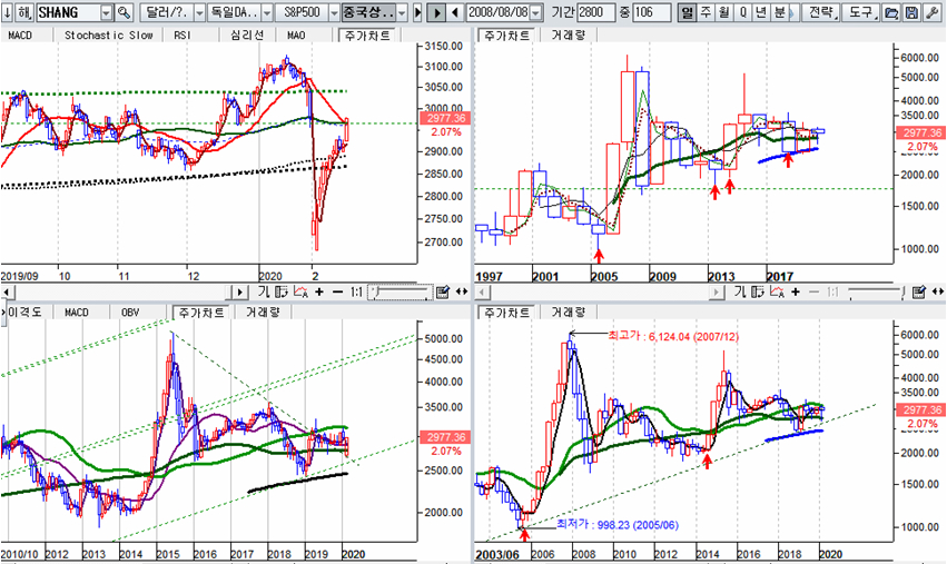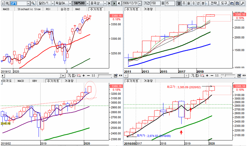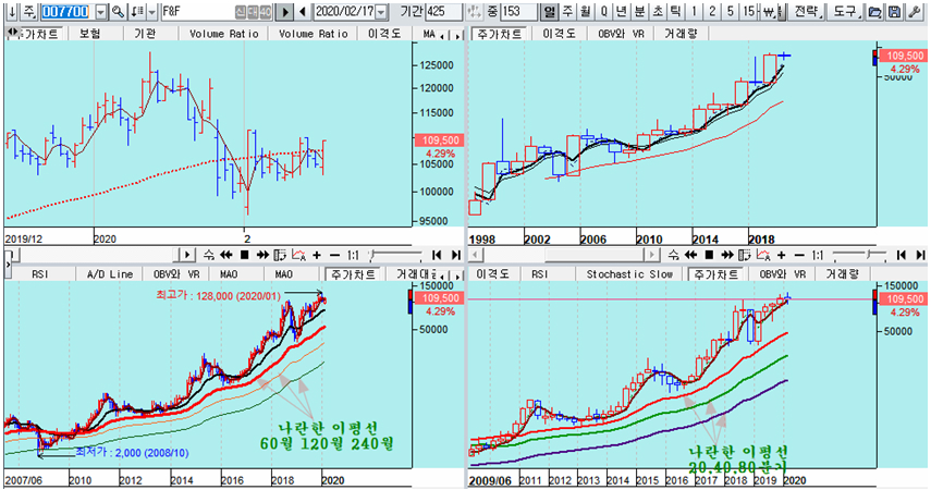 월봉과 분기봉 움직임은 자연스런 이격 조정을 거쳐 상승한 모습으로