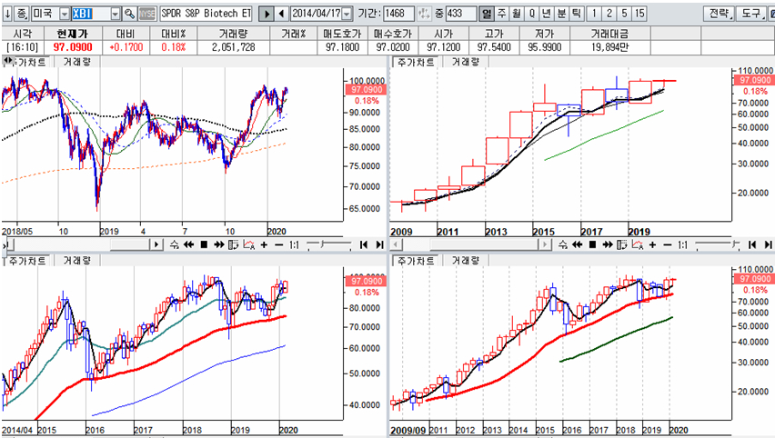 미국의 바이오 펀드 XBI도 대세 상승으로 장기 투자 기업이죠.