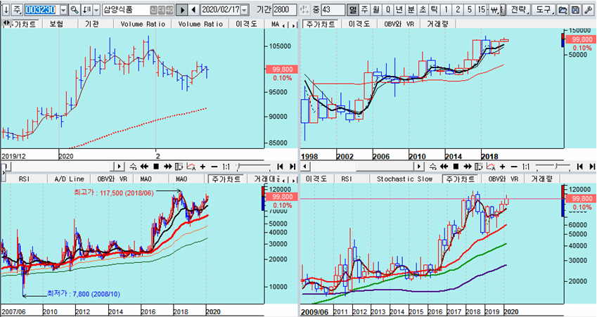 월봉 시가3선과 함께 분기봉 시가3선이 상승 추세를 유지하고 있고,