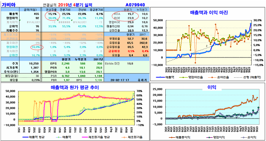 가비아는 매출액이 큰 기업은 아니지만 매출액과 이익이 함께 성장하고,