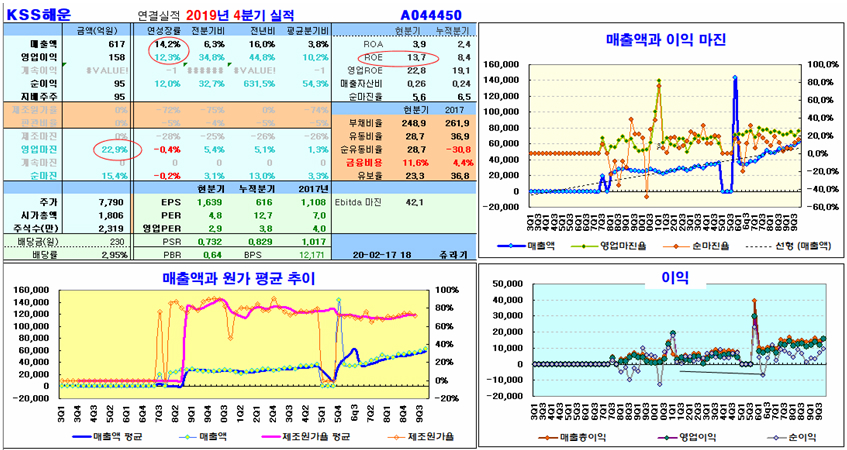 해운업체인 KSS해운 역시 2015년 무렵 분기로 쪼개지지 않아서