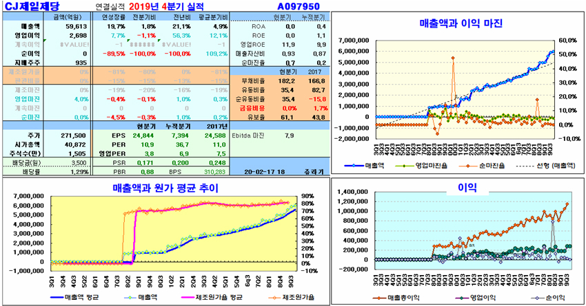 CJ제일제당은 매출액이 20%대 성장을 나타내고 있어 매출성장이 빠르죠.