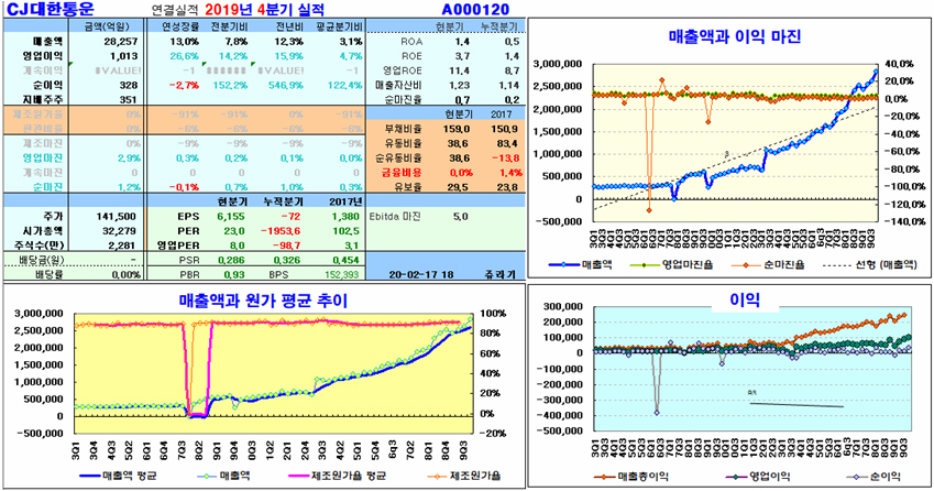경기 영향을 받는 CJ대한통운은 한국이나 중국 경기 회복이 부진한데도