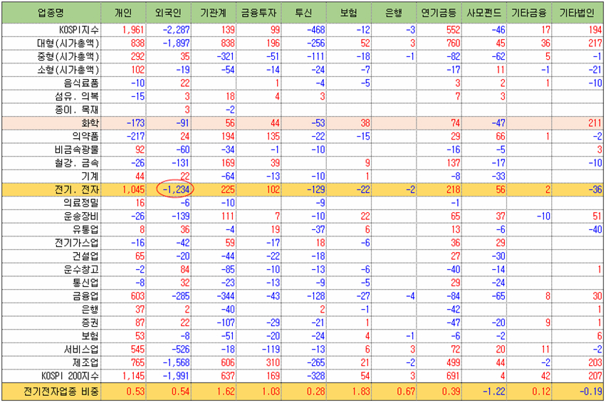 다른 업종을 매도하여 주가의 하락을 유인했던 외국인은