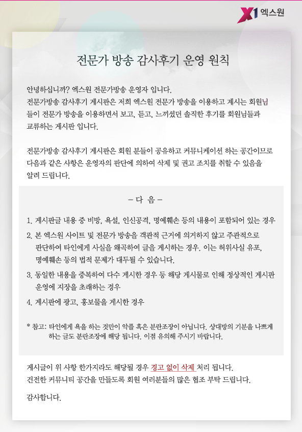 또한, 게시판운영원칙에 맞지 않는 글을 지속적으로 올릴 경우 사이트가 차단될 수 있습니다.