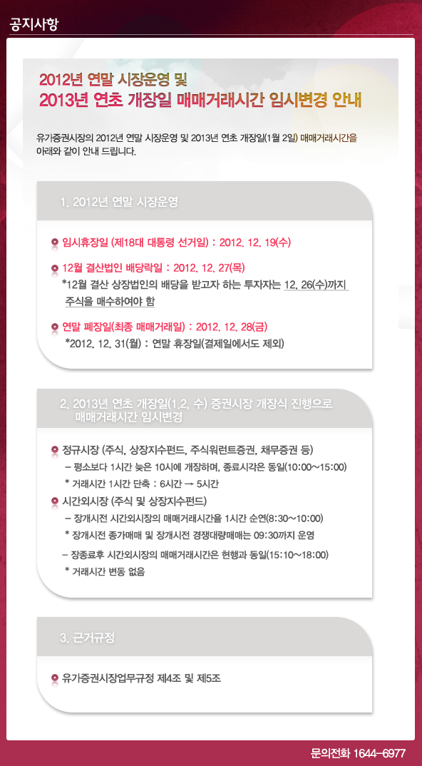 12년 연말 시장운영 및 13년 연초 개장일 매매거래 시간 안내